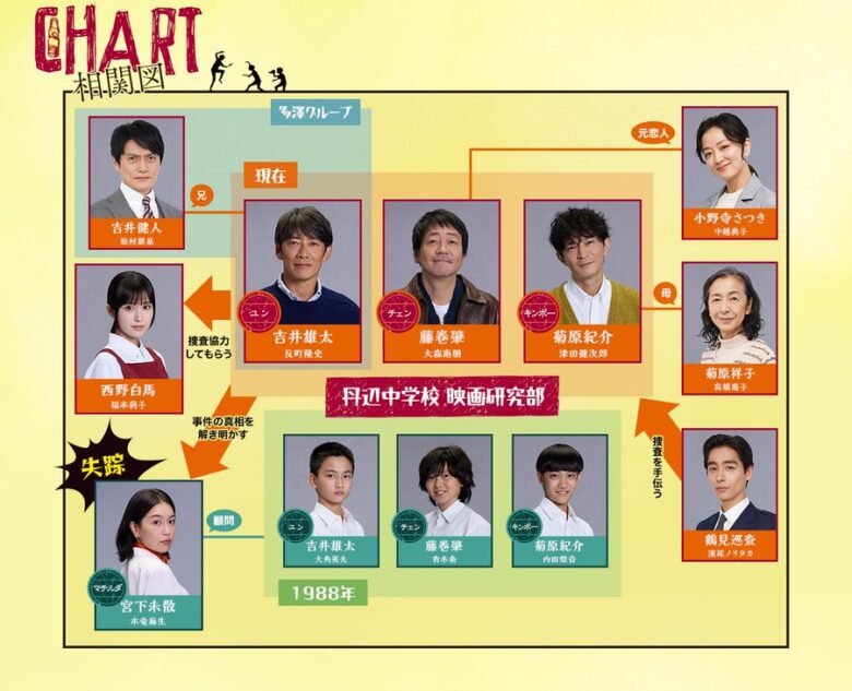 1988年、中学時代は映画研究部でカンフー映画制作に夢中だった彼らも、今や51歳。「こんなはずじゃなかった」と三者三様に人生に行き詰まりを感じていた…。そんなある日、「丹辺市の建設現場から人骨発見」のニュースが!