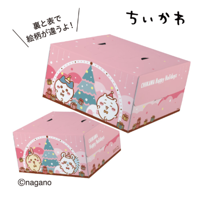 また、ちいかわ夢みるわくわくクリスマスには、ちいかわ専用ケーキBOXとちいかわオリジナルクリア色紙がついています。