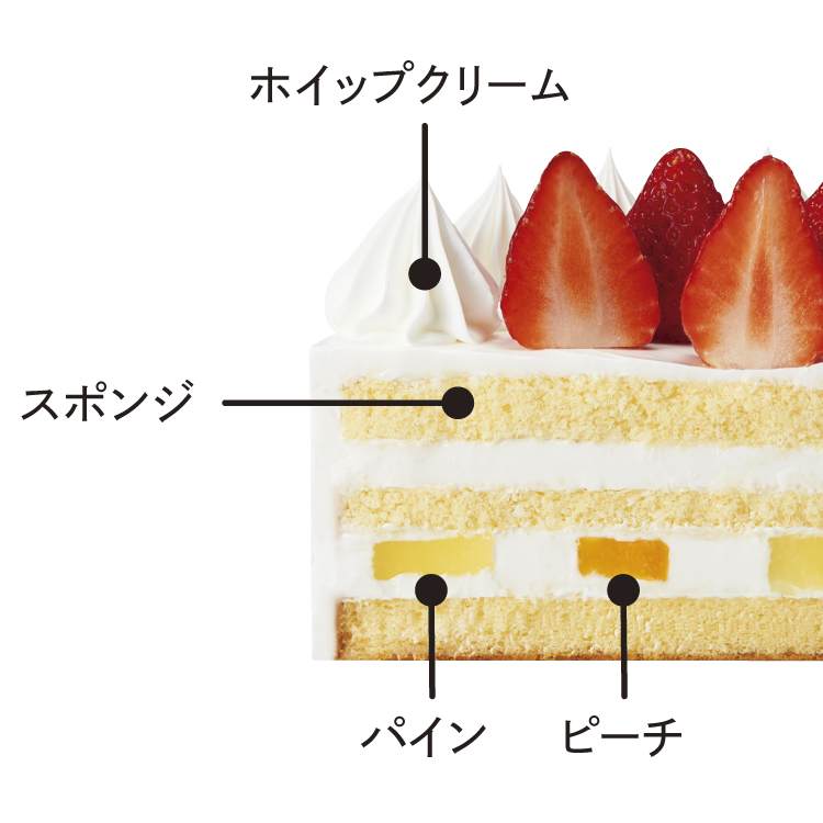 中にはパインとピーチがサンドされており、苺だけでなく様々なフルーツを楽しみたい方におすすめです!
