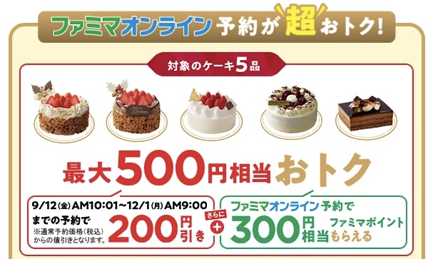 対象商品を12月1日(月)9:00までにファミマオンラインから予約すると、500円分お得に♪