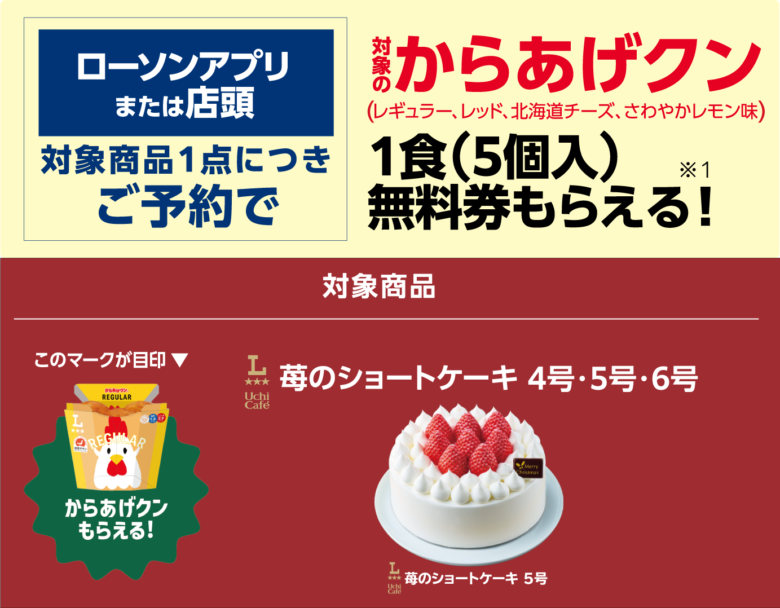 ローソンアプリまたは店頭で苺のショートケーキを予約するともらえる特典です。