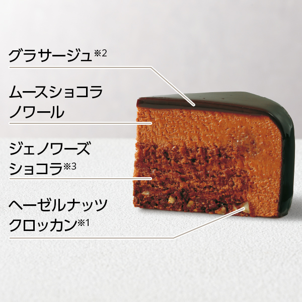 ジェノワーズショコラ(※3)をつややかにコーティングした、美しい仕上がりのケーキです!