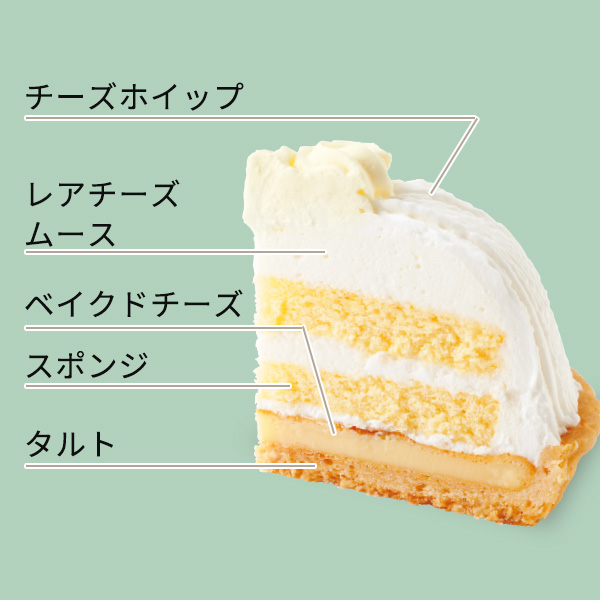 ベイクドチーズとレアチーズムースをチーズホイップでコーティングした、チーズづくしのタルトです。