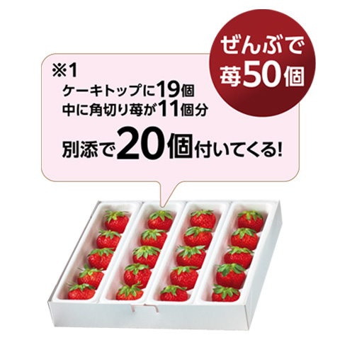 トッピングにも中にも苺がたっぷり使われているのに加え、なんと別添えで20個もの苺がついてきますよ!